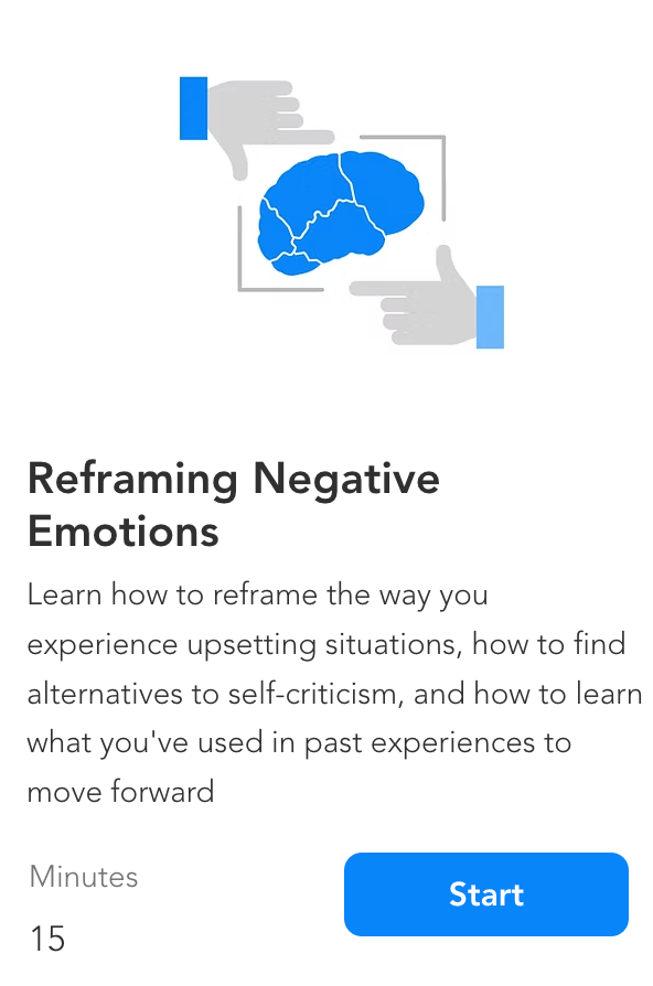 ![]() This quick tool presents a set of questions built on the ideas of Rob Wiblin that you can use to reframe negative emotions. | ![]() Think of it as a Swiss Army knife for your emotions. This iOS app helps you spot, name, and tame feelings before they turn into drama, meltdowns, or awkward texts. |